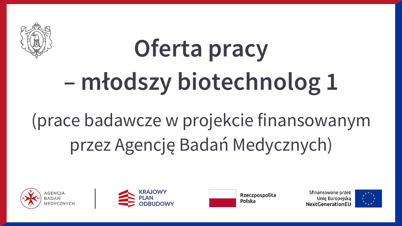 Oferta pracy na stanowisku młodszy biotechnolog 1 – realizacja prac badawczych w projekcie ABM NEW