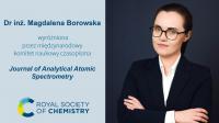 Dr inż. Magdalena Borowska wyróżniona przez międzynarodowy komitet naukowy czasopisma Journal of Analytical Atomic Spectrometry NEW