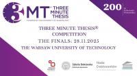 Konkurs Three Minute Thesis® (3MT) organizowany jest w Politechnice Warszawskiej po raz drugi. Wydarzenie skierowane jest do doktorantów, którzy w ciągu trzech minut mają za zadanie opowiedzieć na scenie o prowadzonych przez siebie badaniach – bez użycia prezentacji, multimediów czy rekwizytów i to w sposób interesujący i zrozumiały dla publiczności niemającej wiedzy w danej dziedzinie badawczej.