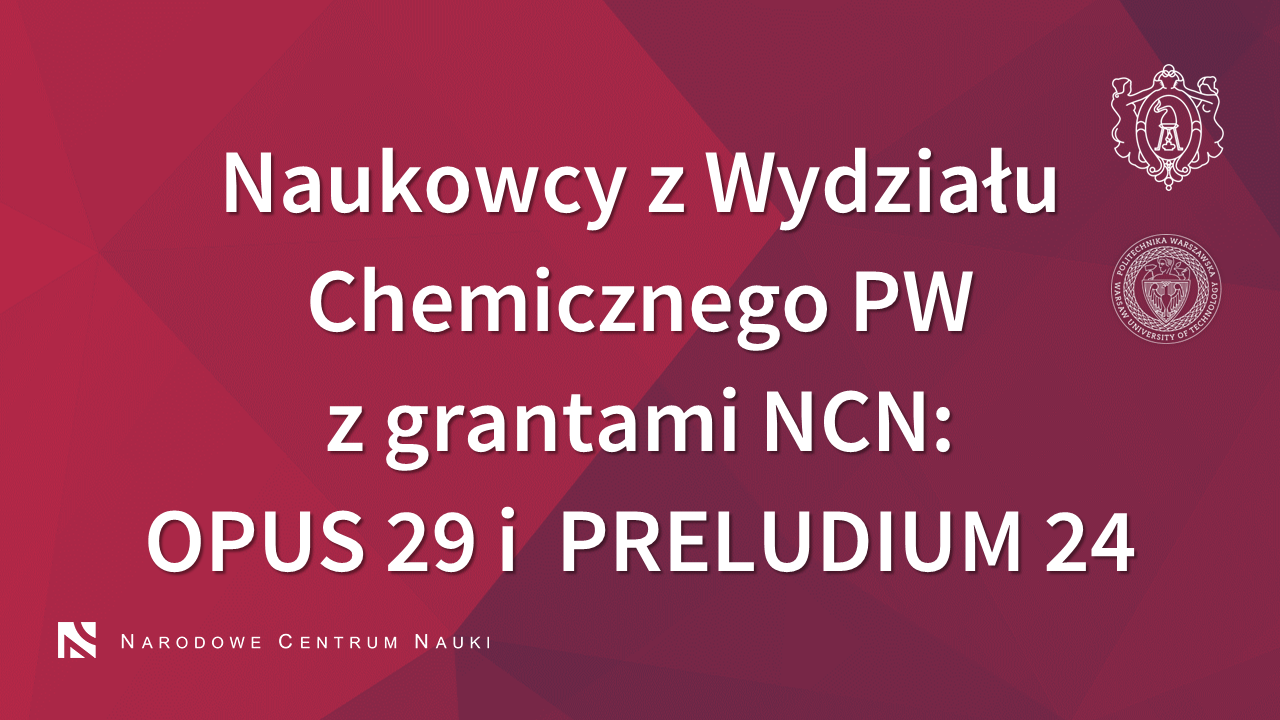 Naukowcy z Wydziału Chemicznego PW z grantami NCN: OPUS 29 i PRELUDIUM 24 NEW